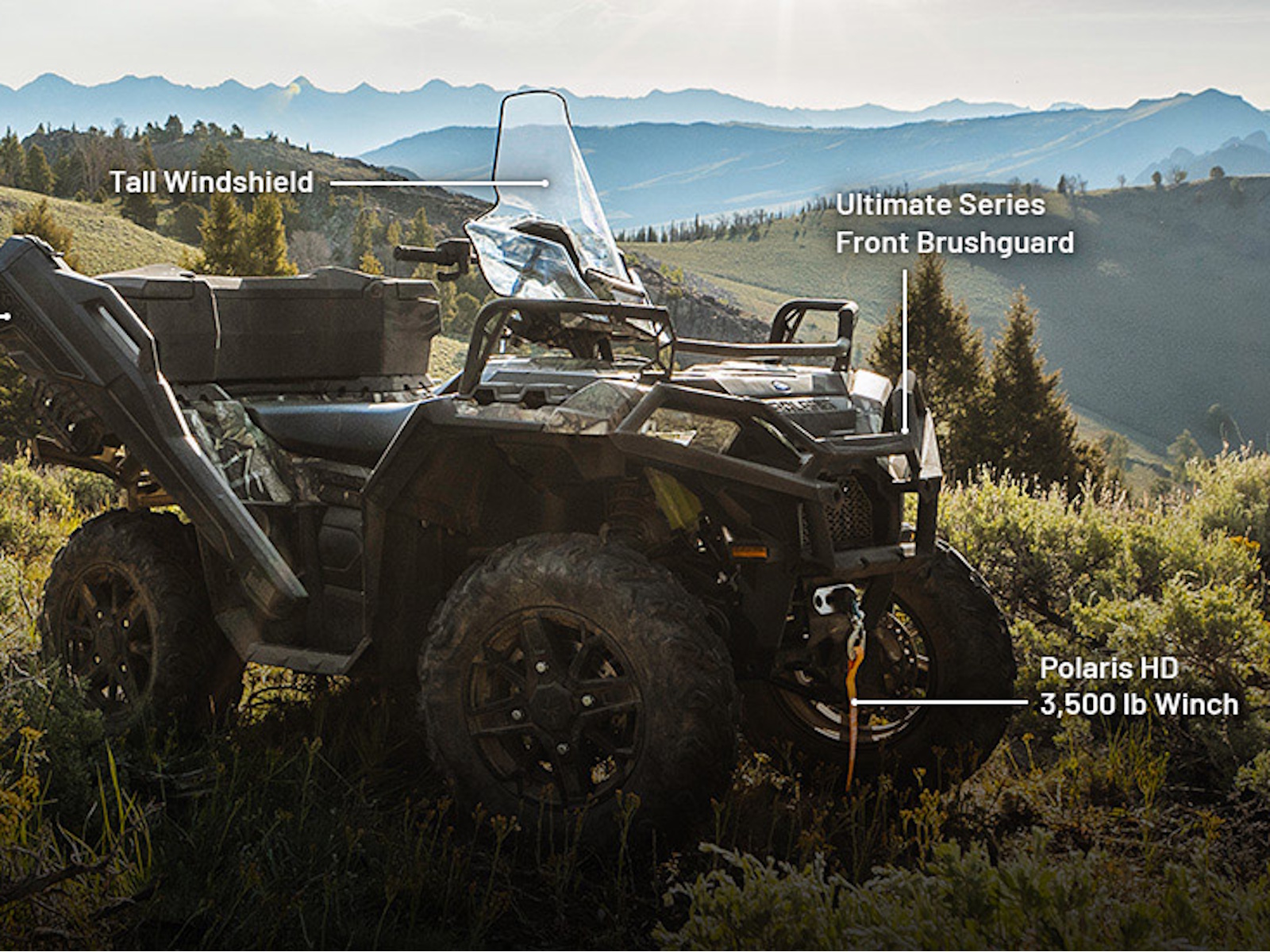 You can tow, pull and haul heavy loads in order to finish big jobs, or get all your gear to camp in one trip, thanks to a massive 1,500-lb. towing capacity. Plus, Sportsman 850 Ultimate Trail comes with a 3,500-lb. Polaris HD Winch with Synthetic Rope.