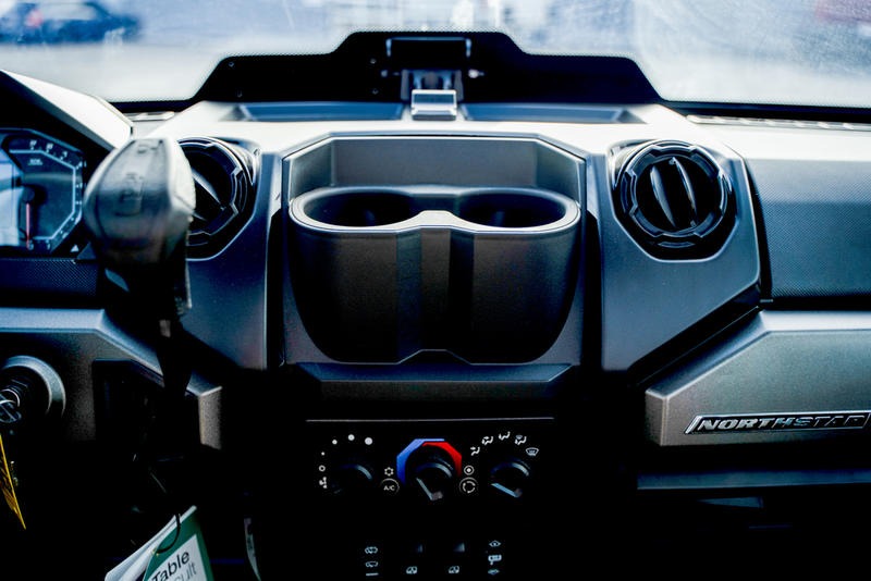 Dual-sweep analog dials with 4 in LCD rider information center: user-selectable blue/red backlighting & brightness, programmable service intervals, speedometer, tachometer, odometer, tripmeter, clock, hour meter, gear indicator, fuel gauge, coolant temperature, voltmeter, service indicator and codes, seat belt reminder light, gear indicator | Cab Components: ProFit sport roof. Other accessory options available